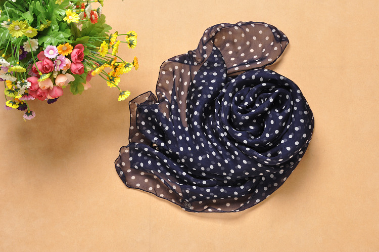 淘宝乐玲品牌时尚真丝丝巾,藏蓝色波点女百搭春夏款洋气薄纱巾