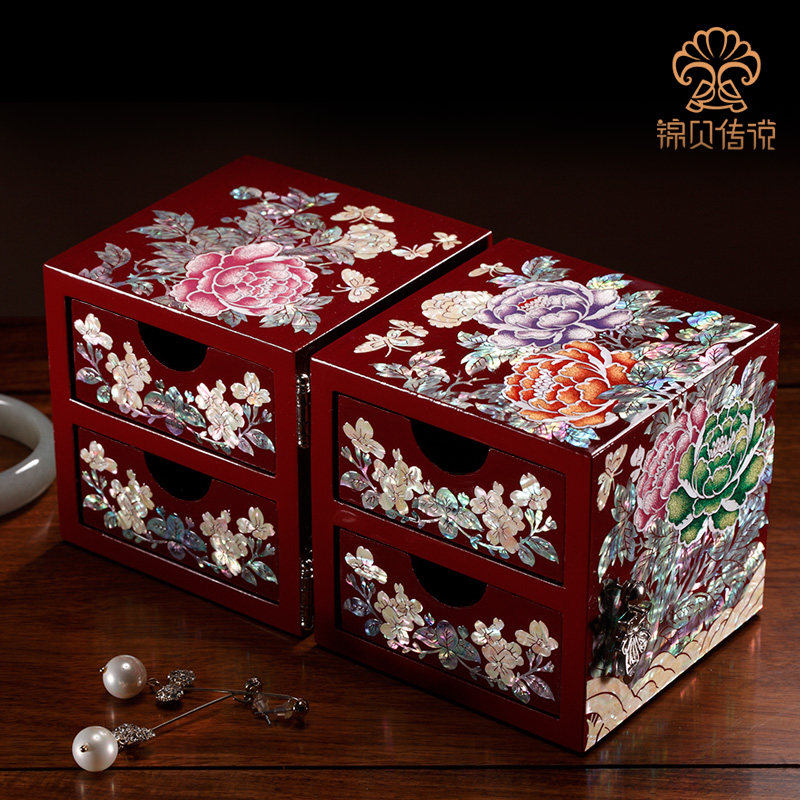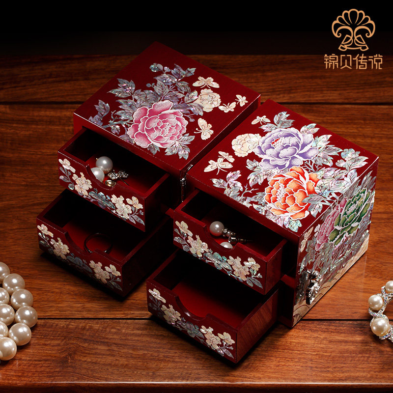 淘宝紫贝DIY,螺钿漆器实木质首饰盒公主收纳盒