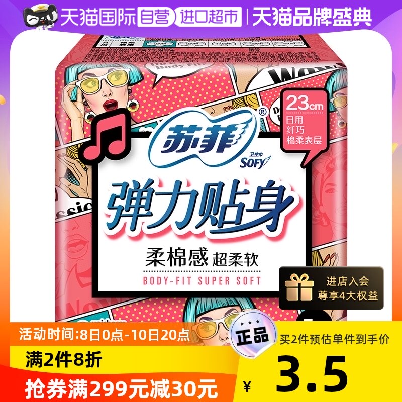 天猫国际自营进口超市国内现货,【自营】苏菲弹力贴身日用护翼卫生巾