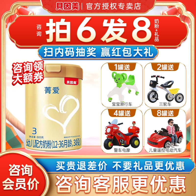 天猫贝因美怀橘专卖店,咨询140贝因美菁爱3段奶粉