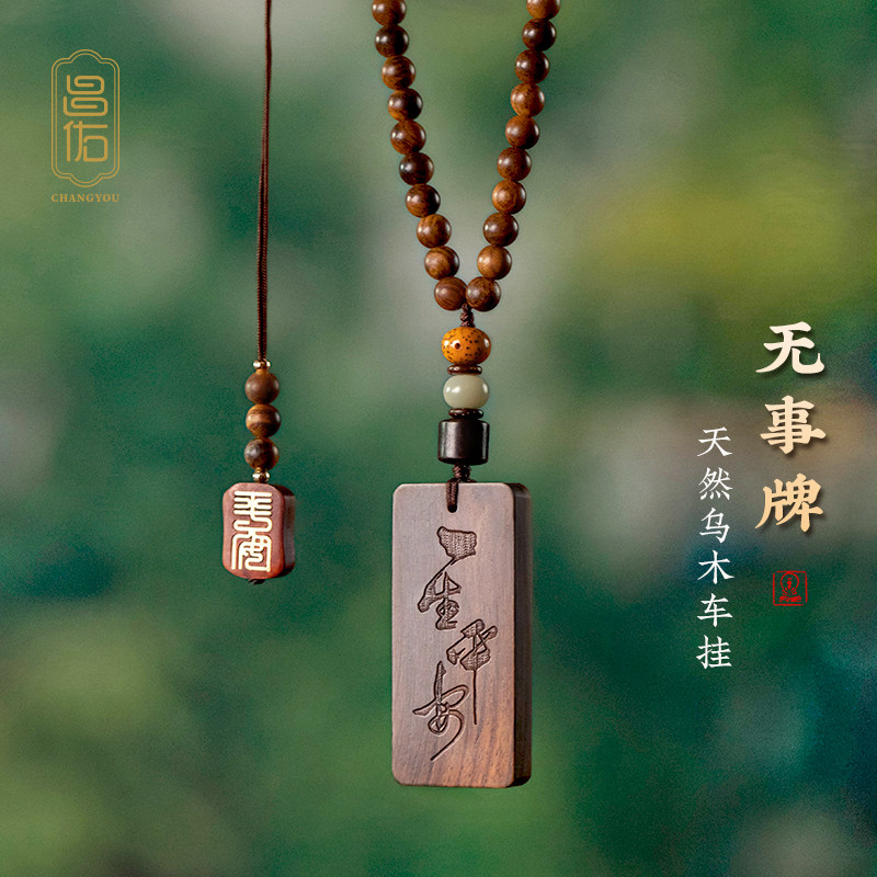 天猫昌佑旗舰店,乌木汽车挂件一生平安后视镜无事牌,双面雕刻 专属定制刻字