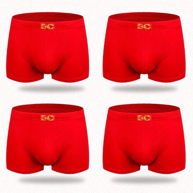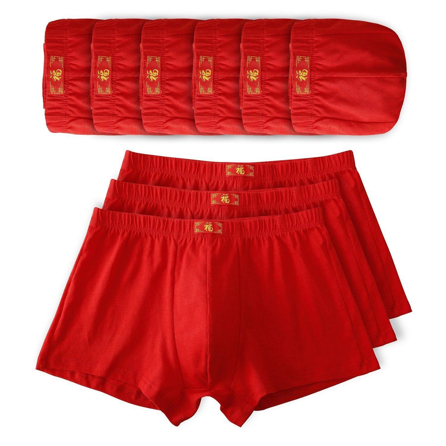 淘宝纯棉内裤女,100%棉平角男士内裤福字本命年纯棉大红色裤头青年大码全棉四角裤