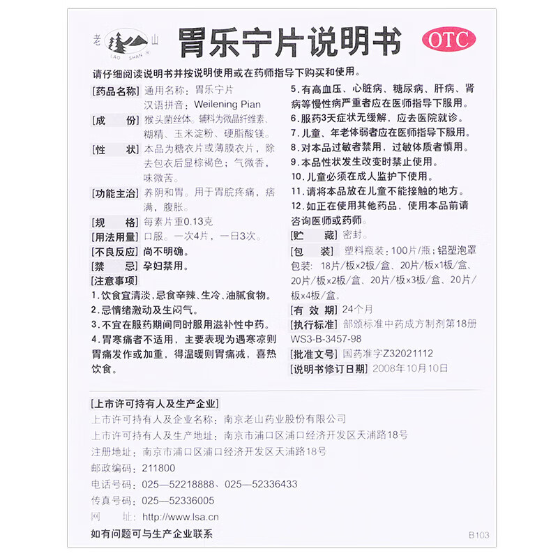 天猫仁太医大药房旗舰店,【老山】胃乐宁片0.13g*60片/盒胃疼腹胀痞满养阴和胃