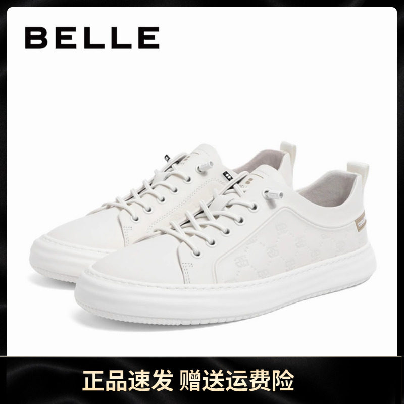 淘宝百丽奥莱Outlets线上直售,百丽男鞋2023夏款牛皮英伦小白鞋男高级感厚底休闲板鞋男A1128BM3