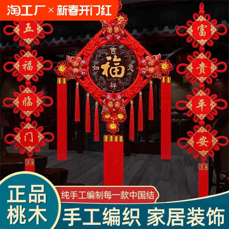 天猫天天特卖工厂店,中国结挂件桃木镇宅福字春节过年客厅装饰乔迁对联特大手工编织