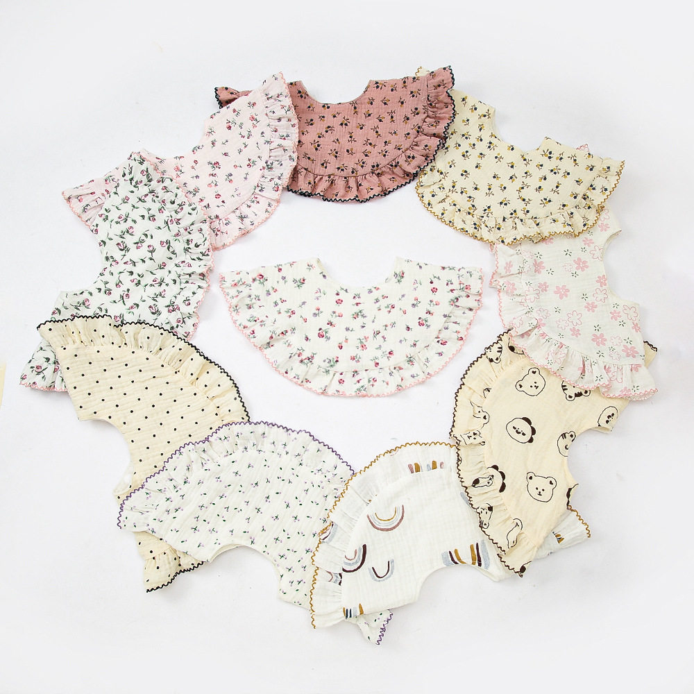 可爱公主假领宝宝口水巾新生婴儿360度纯棉纱布围嘴防吐奶围兜垫