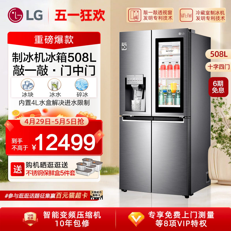 天猫LG官方旗舰店,LG敲一敲十字四门508L制冰冰箱,LG重磅新品 508L敲一敲门中门自动制冰冰箱