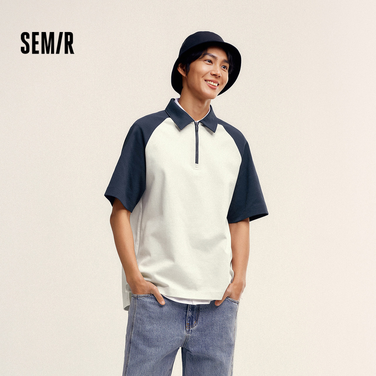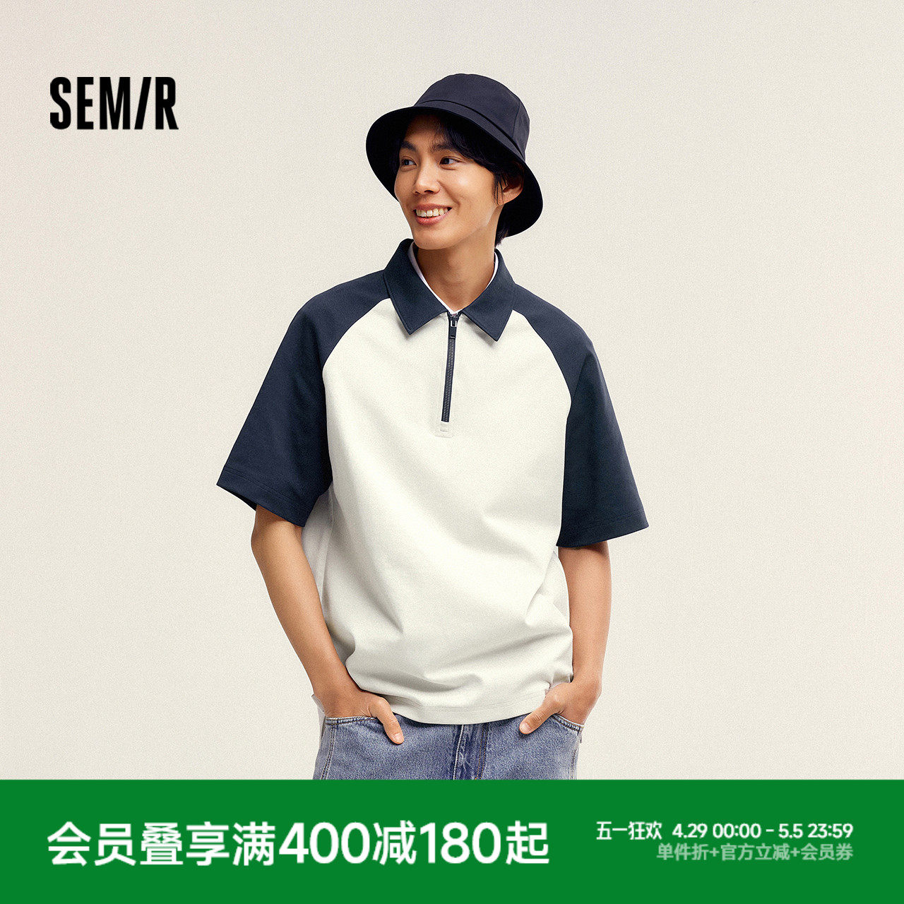 天猫森马官方旗舰店,森马美式复古学院风短袖POLO衫男,宽松版型 撞色插肩袖 美式复古