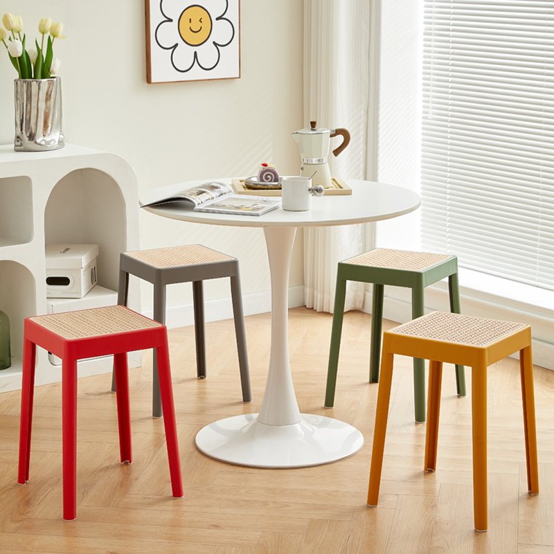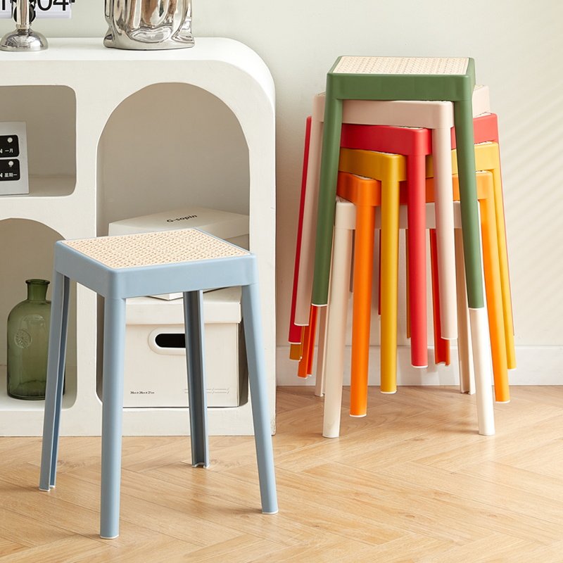 北欧加厚塑料凳子仿藤编塑料椅子家用餐椅网红餐厅等位凳子休闲椅