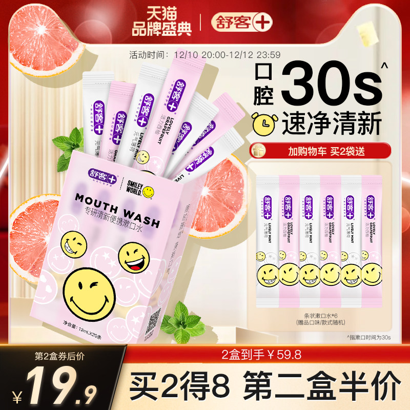 天猫舒客官方旗舰店,舒客抑菌漱口水便携式一次性小支装
