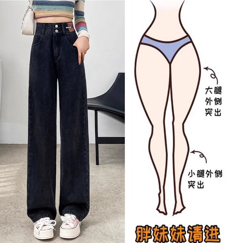 天猫淘工厂美妆直营,大码胖mm秋季窄版阔腿牛仔裤女黑灰色2025新款高腰显瘦直筒拖地裤