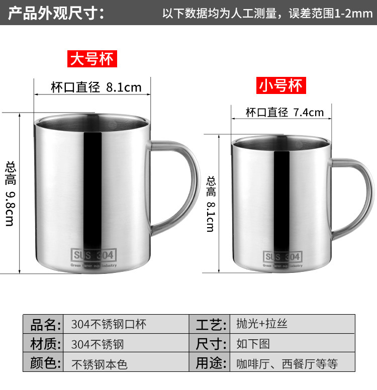 淘宝小息私人,304不锈钢带手柄办公室牛奶马克杯