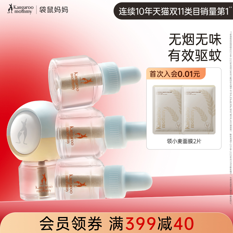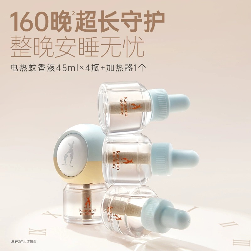 天猫袋鼠妈妈旗舰店,袋鼠妈妈电热蚊香液(1器+4液),(1器+4液)温和绿色配方 温和驱蚊 守护家