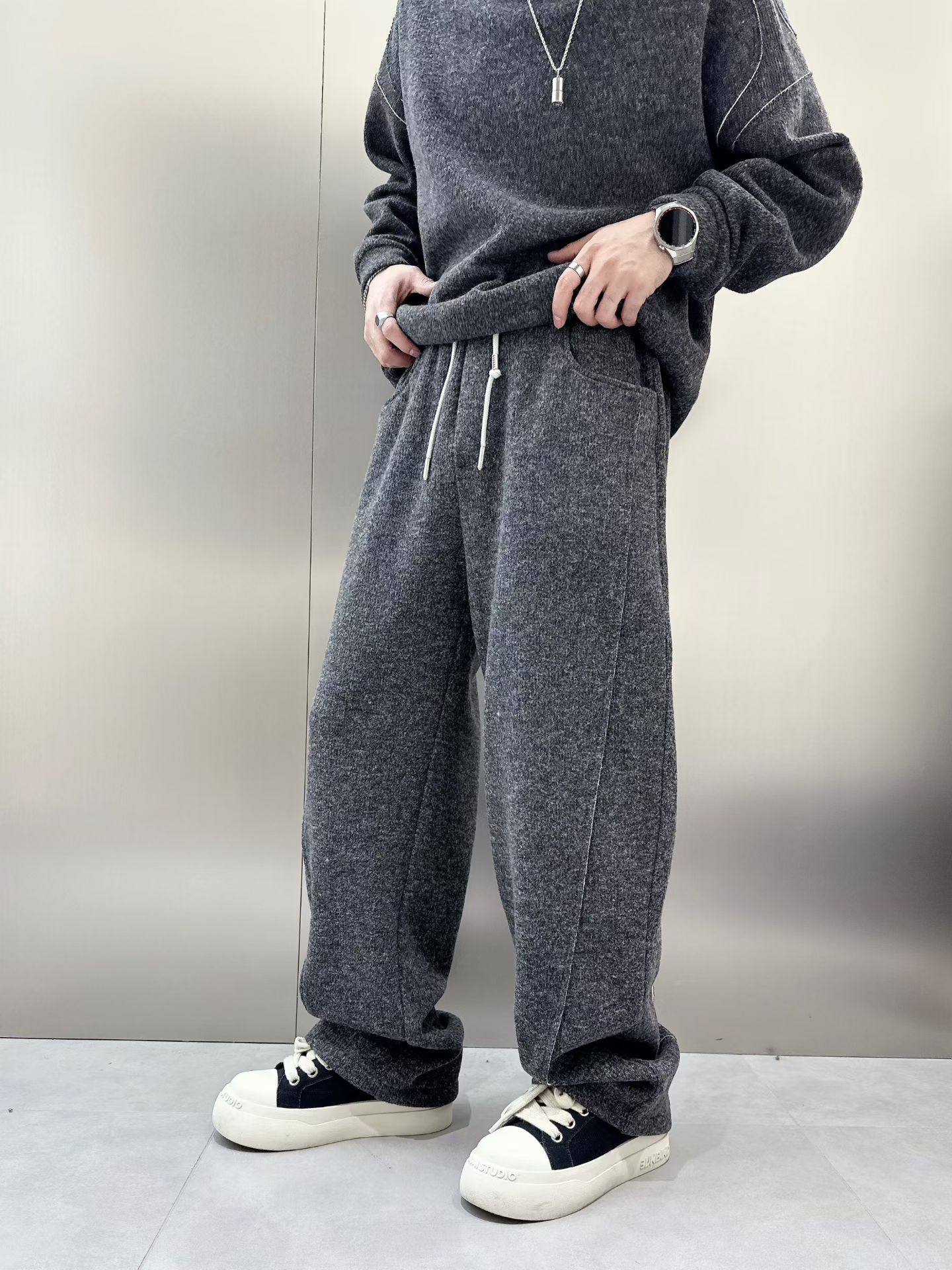 淘宝酷吧男装潮品馆,男士套装2025冬季潮牌宽松复古糯米绒轻奢休闲青年百搭加绒两件套
