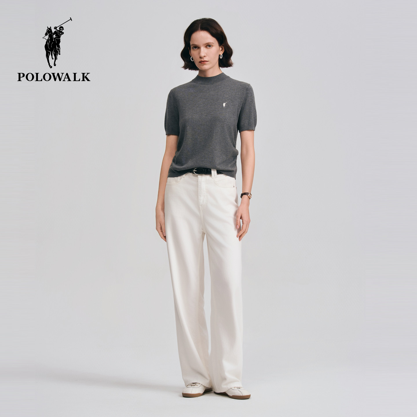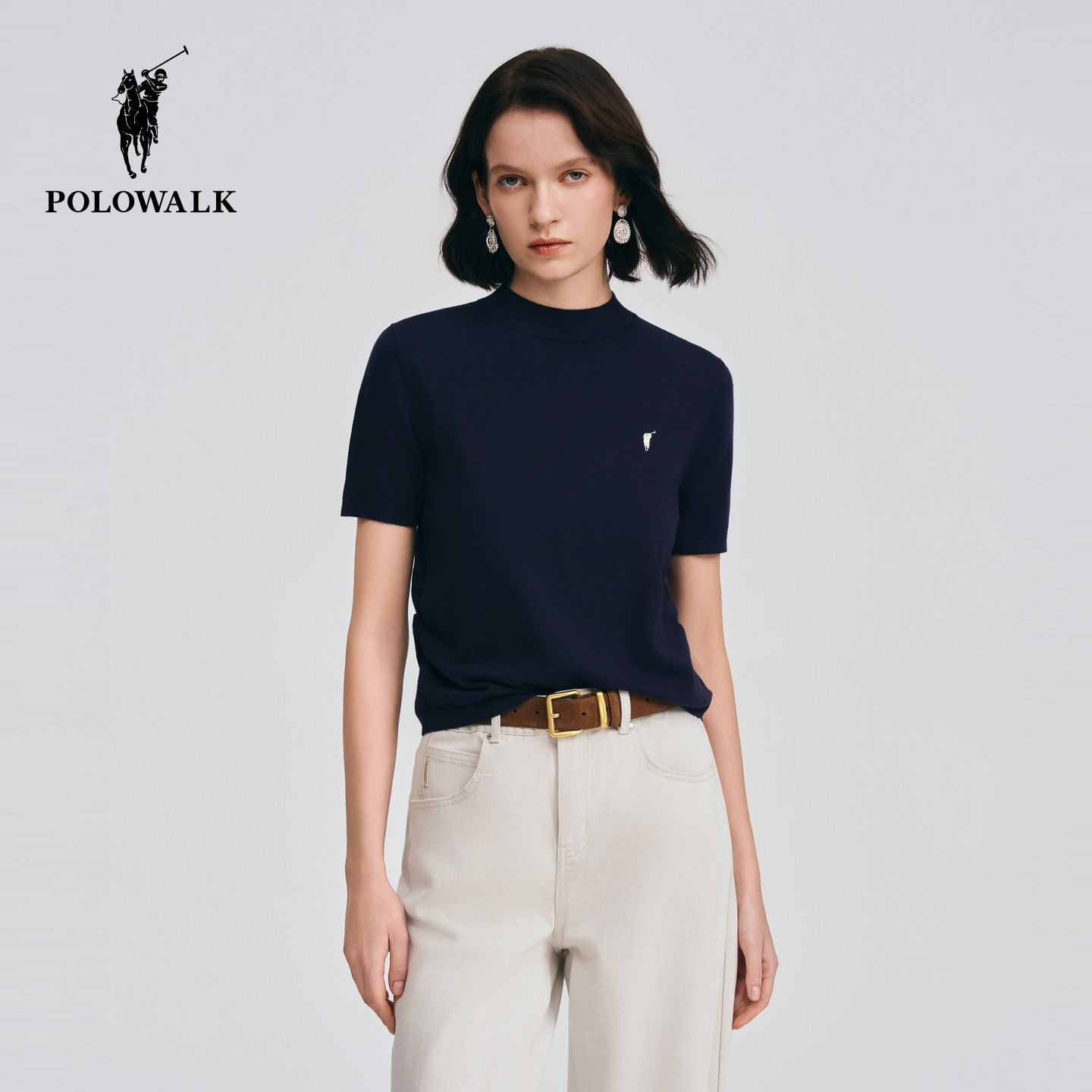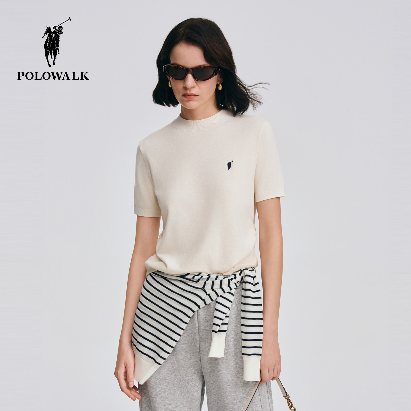 天猫POLOWALK旗舰店,POLOWALK女式短袖针织衫2026夏季新品简约百搭修身显瘦短袖针织衫