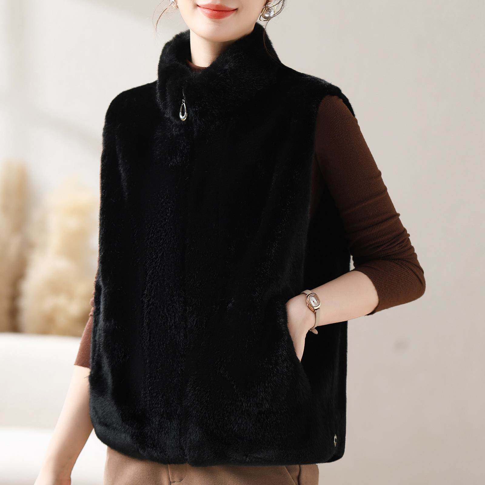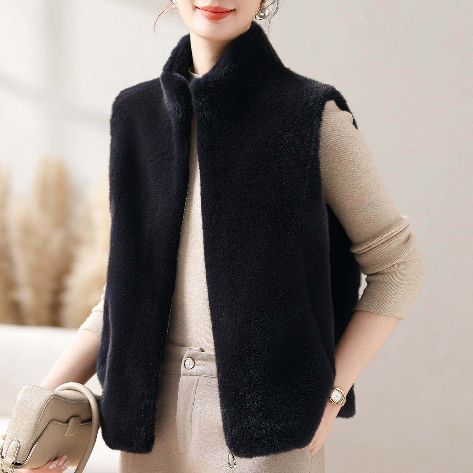 淘宝精品女装毛衣2015,秋冬装立领仿水貂绒马甲衣女拉链外穿无袖针背心妈妈保暖坎肩马夹