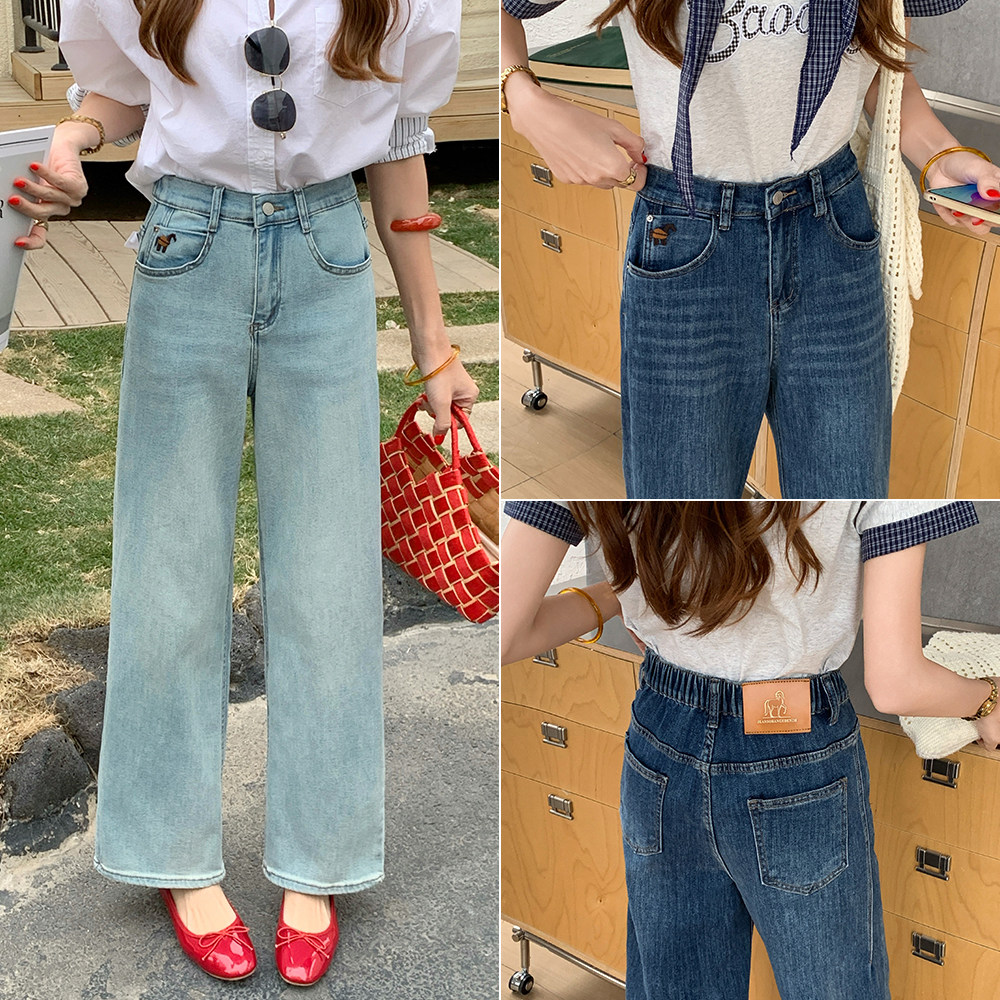 淘宝大女孩大码女装,大码胖mm2026春季新款高腰显瘦刺绣直筒牛仔裤女显腿长拖地裤2603