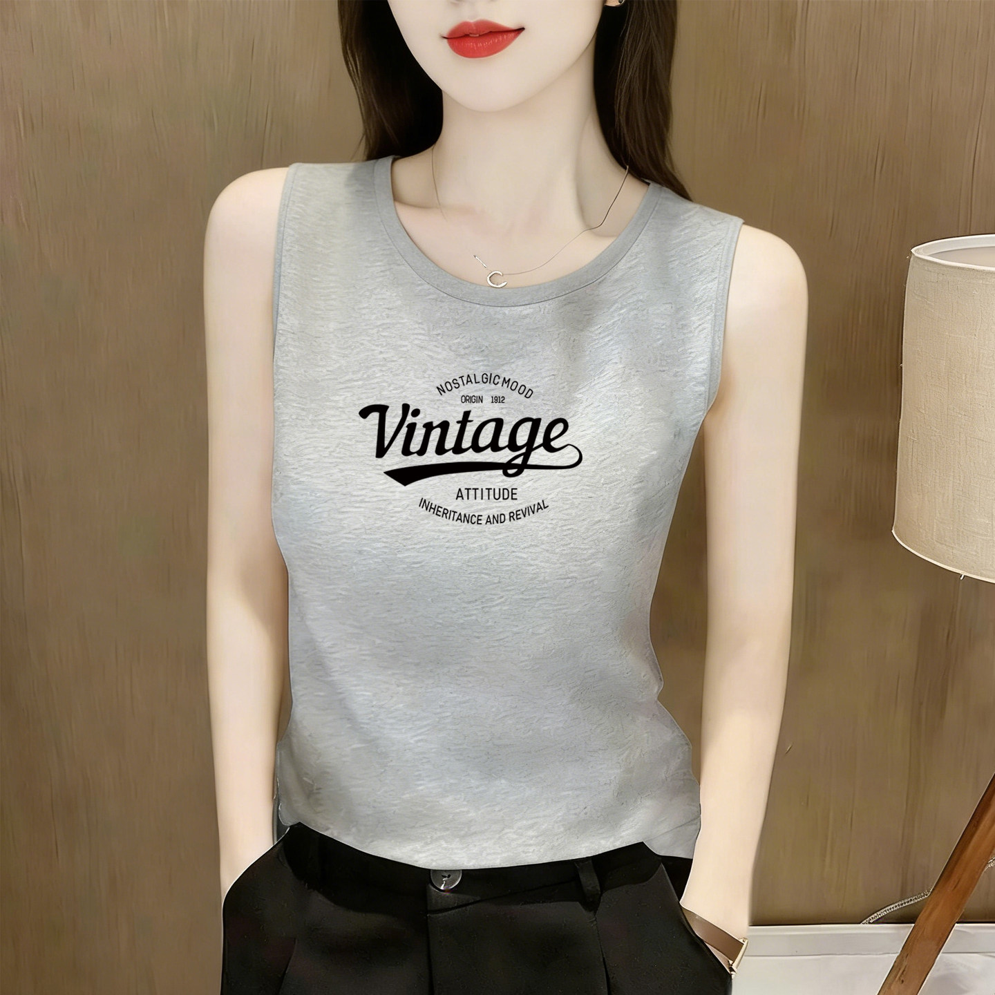 淘宝爱尚大码服饰,无袖印花纯棉背心宽肩内搭打底衫